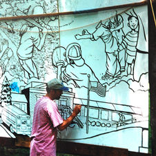 I published two children's books about construction toys under the title "Construction Buddies that sold 97,000 books. I also painted a 40-foot mural with kids helping for the local elementary school. Other kids' projects are shown.